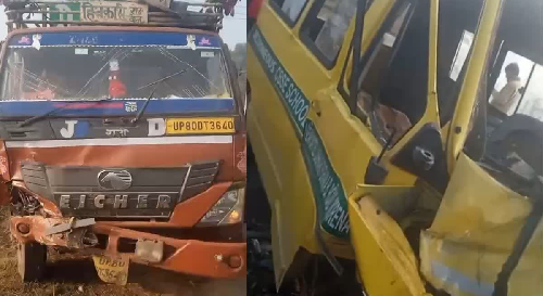 मुरैना: ट्रक ने स्कूल बस को मारी जोरदार टक्कर, ड्राइवर की मौके पर मौत, 6 बच्चे घायल
