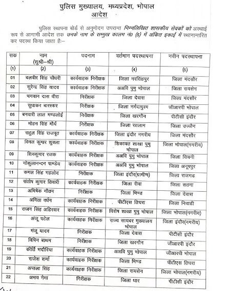 माना जा रहा है कि आगामी महीनों की कानून-व्यवस्था और प्रशासनिक कसावट को देखते हुए यह 'थोकबंद' तबादले किए गए हैं. ट्रांसफर लिस्ट में भोपाल, इंदौर, ग्वालियर और जबलपुर जैसे बड़े शहरों के थानों के प्रभारियों के नाम भी शामिल हैं.