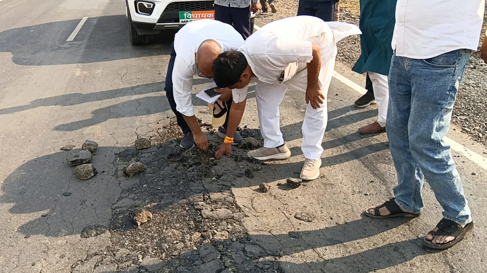 सड़क की हालत बिगड़ने पर विधायक राजेश वर्मा स्वयं मौके पर पहुंचे और अधिकारियों को बुलाकर जमीनी हकीकत दिखाई। इस दौरान उन्होंने PWD अधिकारियों को कड़ी फटकार लगाई और कलेक्टर से निष्पक्ष जांच कराने की मांग की। साथ ही उन्होंने चेतावनी दी कि यदि कार्रवाई नहीं हुई तो वे सीधे मुख्यमंत्री से शिकायत करेंगे।